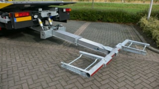 Voorzien van schuifplateau capaciteit 8 ton, Lepel type 5 T welke 2x kan uitschuiven, zware lier, zowel kraan als plateau voorzien van radiografische bediening.